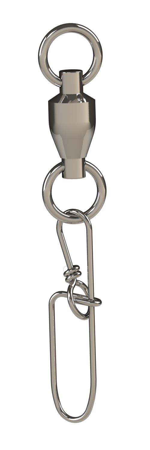 Mořský obratlík s karabinkou Double Insurance v barvě niklu. Obratlík má svařené kroužky k dosažení vyšší pevnosti. Karabinka Double Insurance má dvojitý zámek, takže i při přetížení se sice zdeformuje, ale stále bude držet. Vhodné na mořský rybolov nebo lov sumců. Použijte v kombinaci s Nickel Titanium lankem. K navázání lanka použijte uzel Uni.