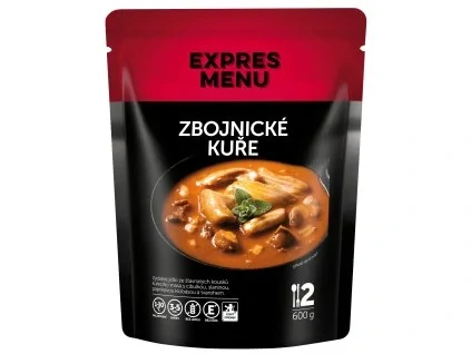 V našich jídlech nenajdete éčka, konzervanty, rychlosoli, umělá sladidla, stabilizátory, barviva ani jinou chemii. Klademe důraz na kvalitní suroviny. | Stačí ohřát v hrnci, mikrovlnce či rychlovarné konvici a během 5 minut máte chutné jídlo na stole. Hotovo, s chutí do toho. | Celá nabídka EXPRES MENU je bezlepková. Pro bezlepkové zahušťování jsme si vytvořili vlastní směs kukuřičné a rýžové mouky. |